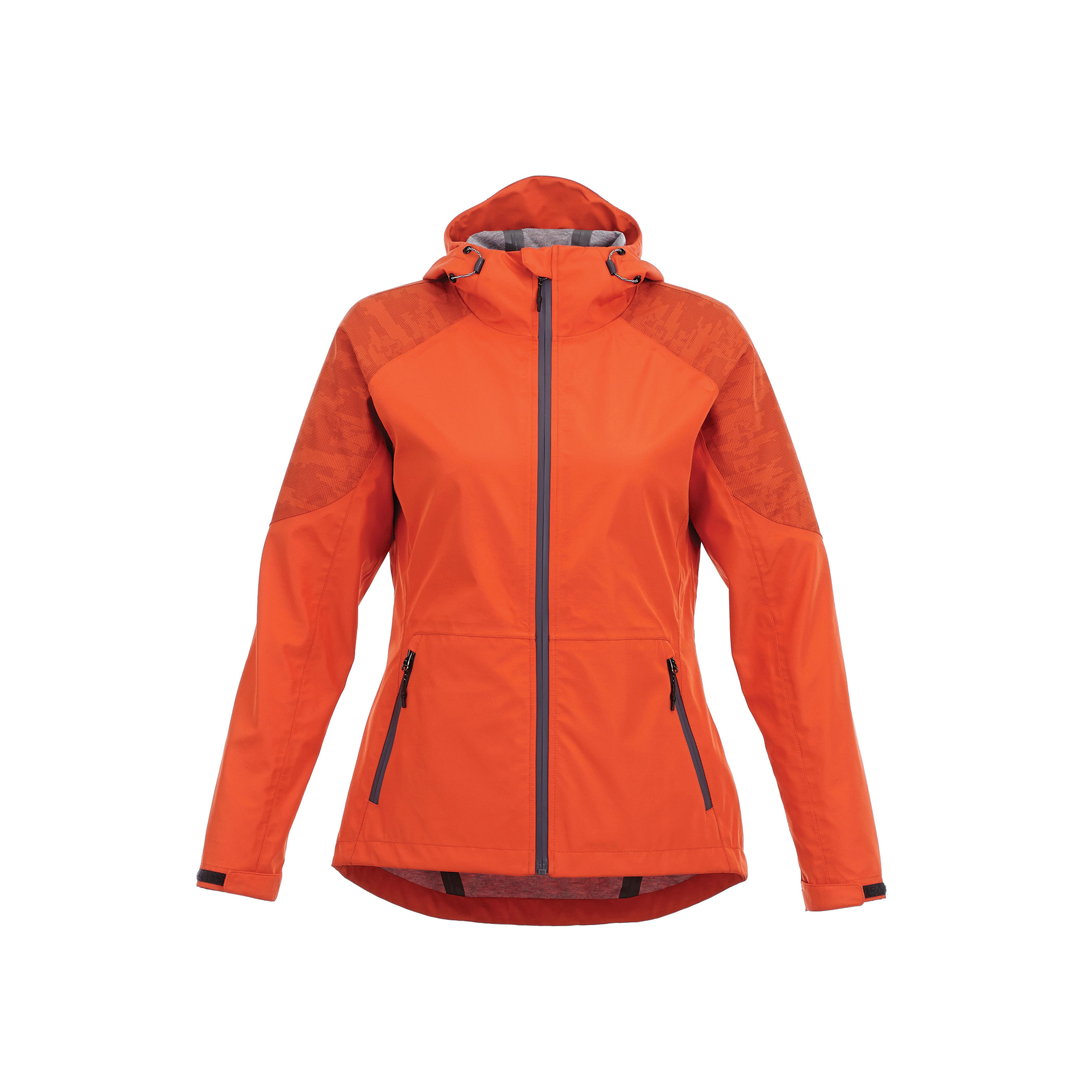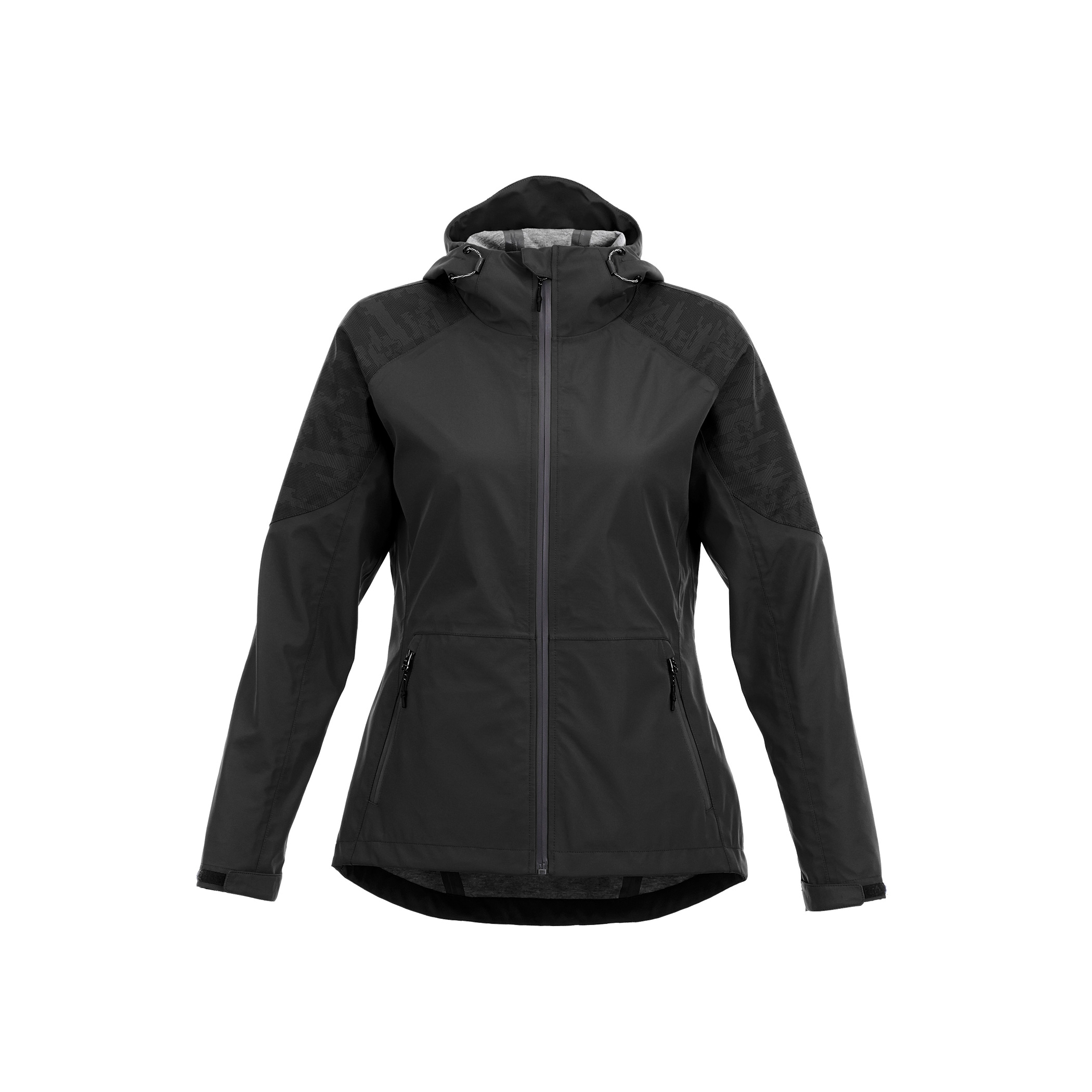 - CONTRAST: 100% Polyester graphic pattern woven bonded to 100% Polyester heather jersey knit with waterproof (8000mm), breathable (800g/m²) membrane and water repellent finish, 236 g/m² (7 oz/yd²).