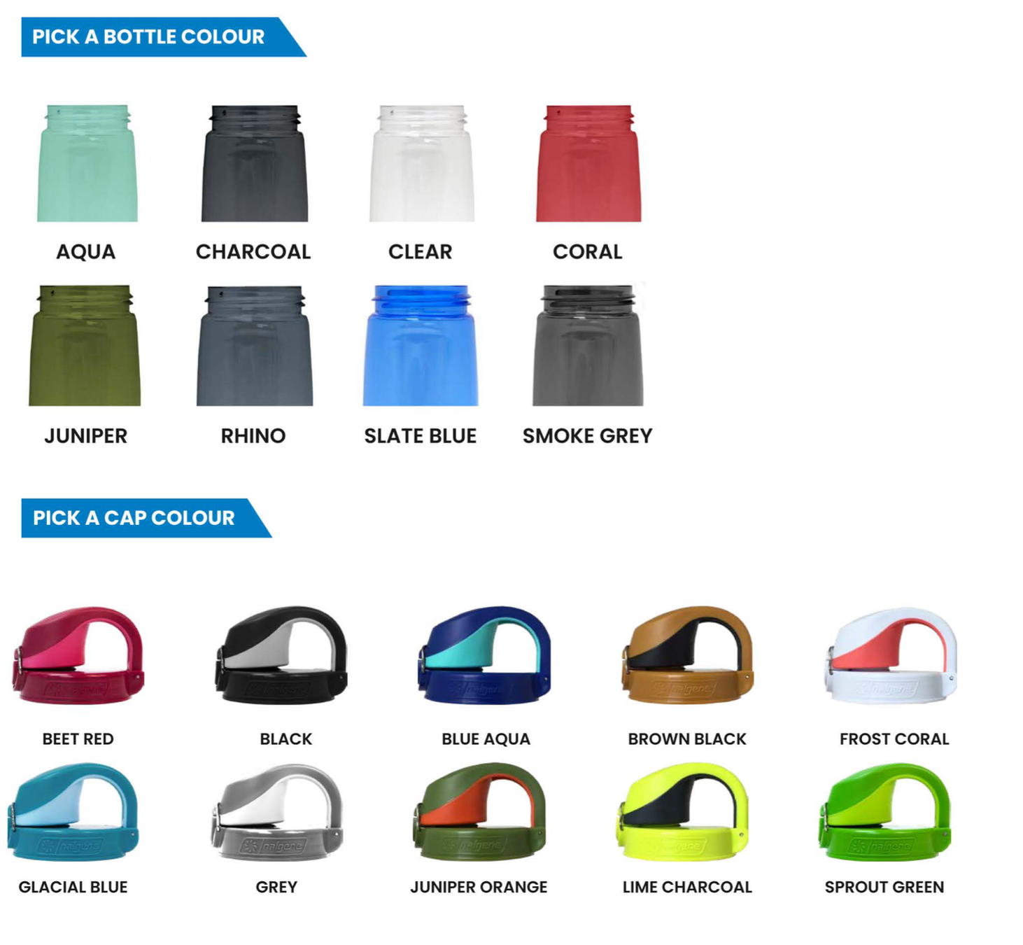 - Mix & match bottle and lid colours