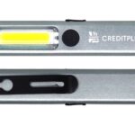- Slender, lightweight aluminum body with bright COB white light, red light, and red strobe